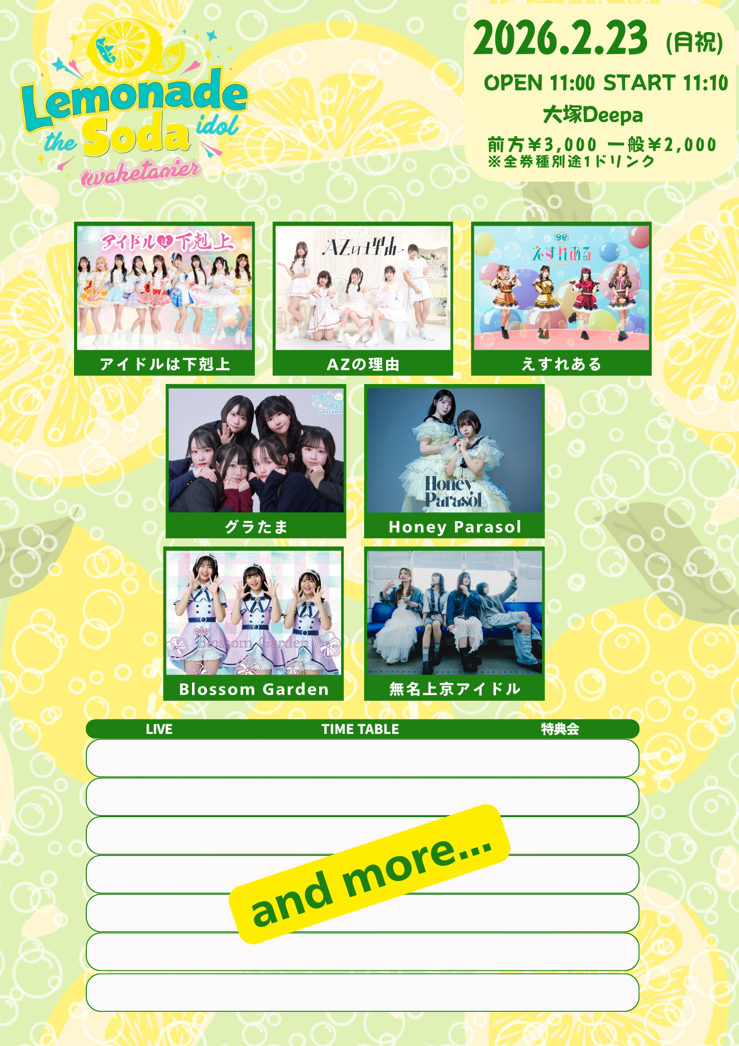 - アイドルは下剋上/AZの理由/えすれある/グラたま/Honey Parasol/Blossom Garden/無名上京アイドル