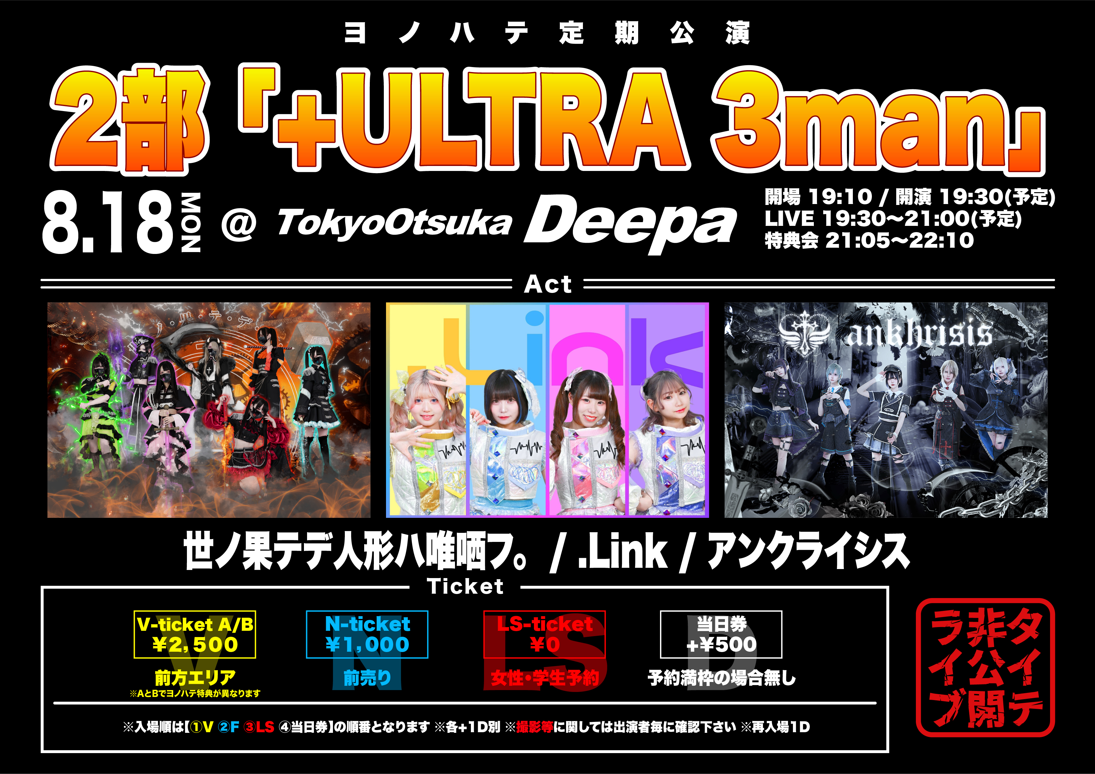 ※当イベントへ出演を予定しているいずれかのユニットにて出禁措置対象となっている方はご入場できません(前売りチケットをご購入された場合は返金等は致しかねますのでご購入はご遠慮下さい)