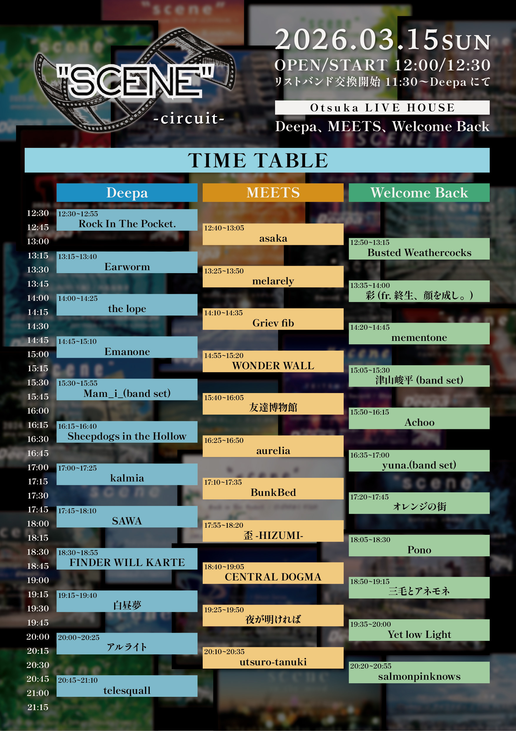 - OPEN/START 12:00/12:30※11:30より大塚Deepaにてリストバンド交換開始