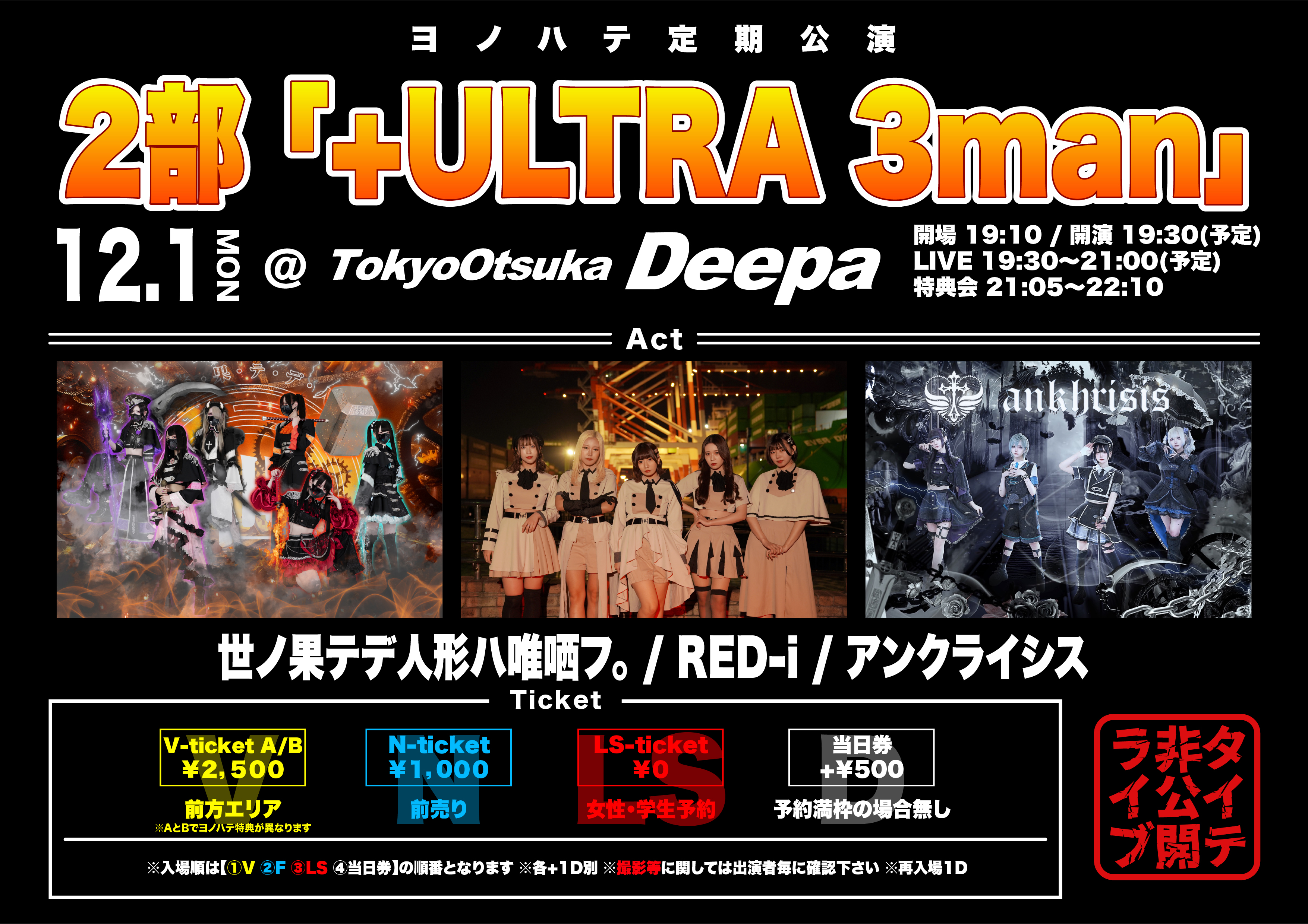 ※当イベントへ出演を予定しているいずれかのユニットにて出禁措置対象となっている方はご入場できません(前売りチケットをご購入された場合は返金等は致しかねますのでご購入はご遠慮下さい)