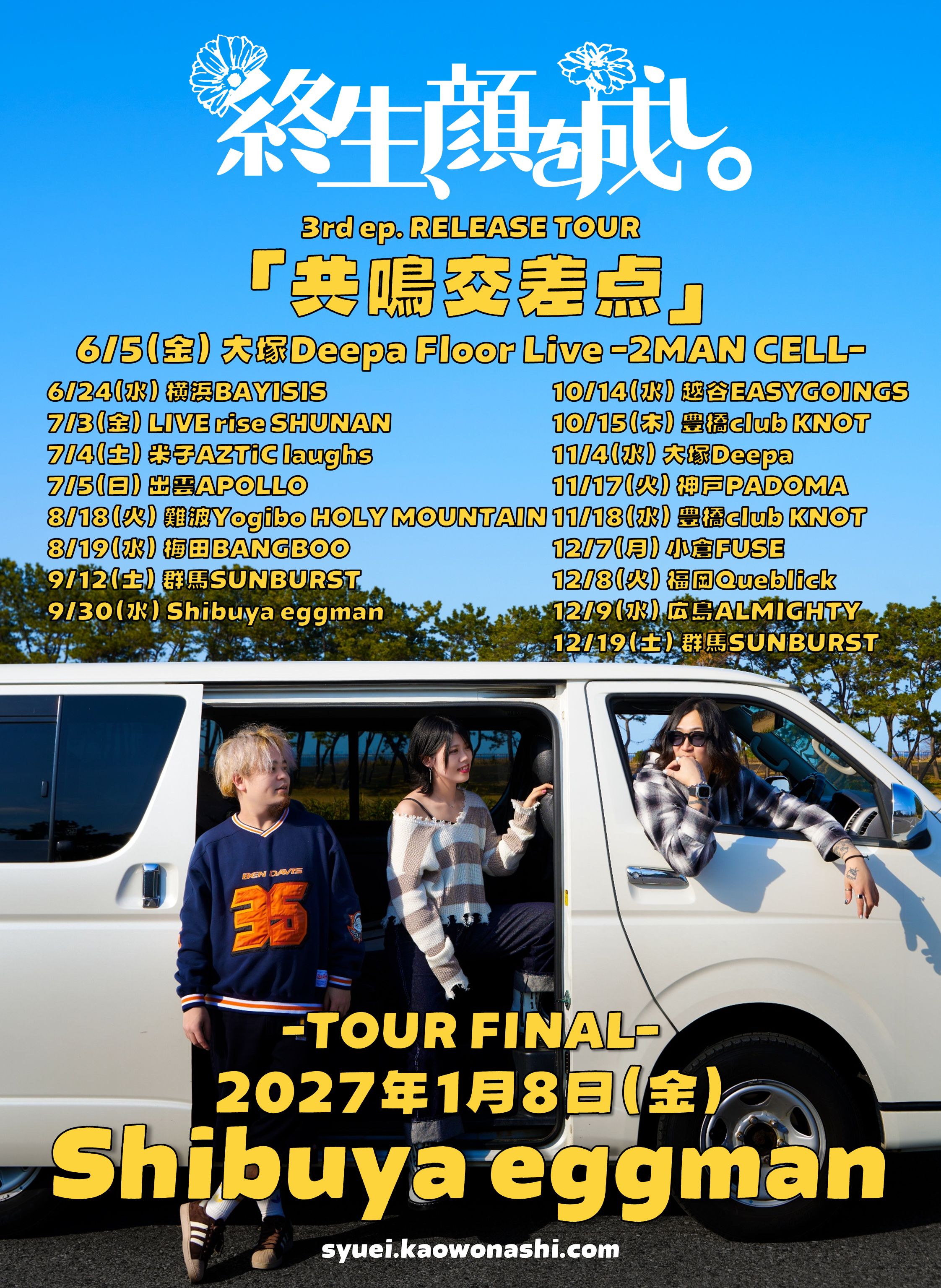 大塚 Deepa スケジュール 2026.6.05(Fri) 終生、顔を成し。3rd ep Release Tour 「共鳴交差点」 Floor Live -2MAN CELL- [ACT] 終生、顔を成し。 AINSEL(広島) [OPEN/START] 19:00/19:30 [料金] ADV ¥3,500(+1D¥700-) ※ご来場者様へ※ ・本イベントはフロアライブとなります為、本来のステージ箇所をを客席として解放いたします。 ・当日は混雑が予想されますのでお手荷物は最小限でお願い致します。 また、荷物等で場所取りなどはご遠慮ください。 ・会場クローク(¥500)がございますのでキャリーケース等大きい荷物が有る場合はこちらご利用ください。 ・普段よりお客様の近くに機材が設置されます。機材には触れないようにお願い致します。