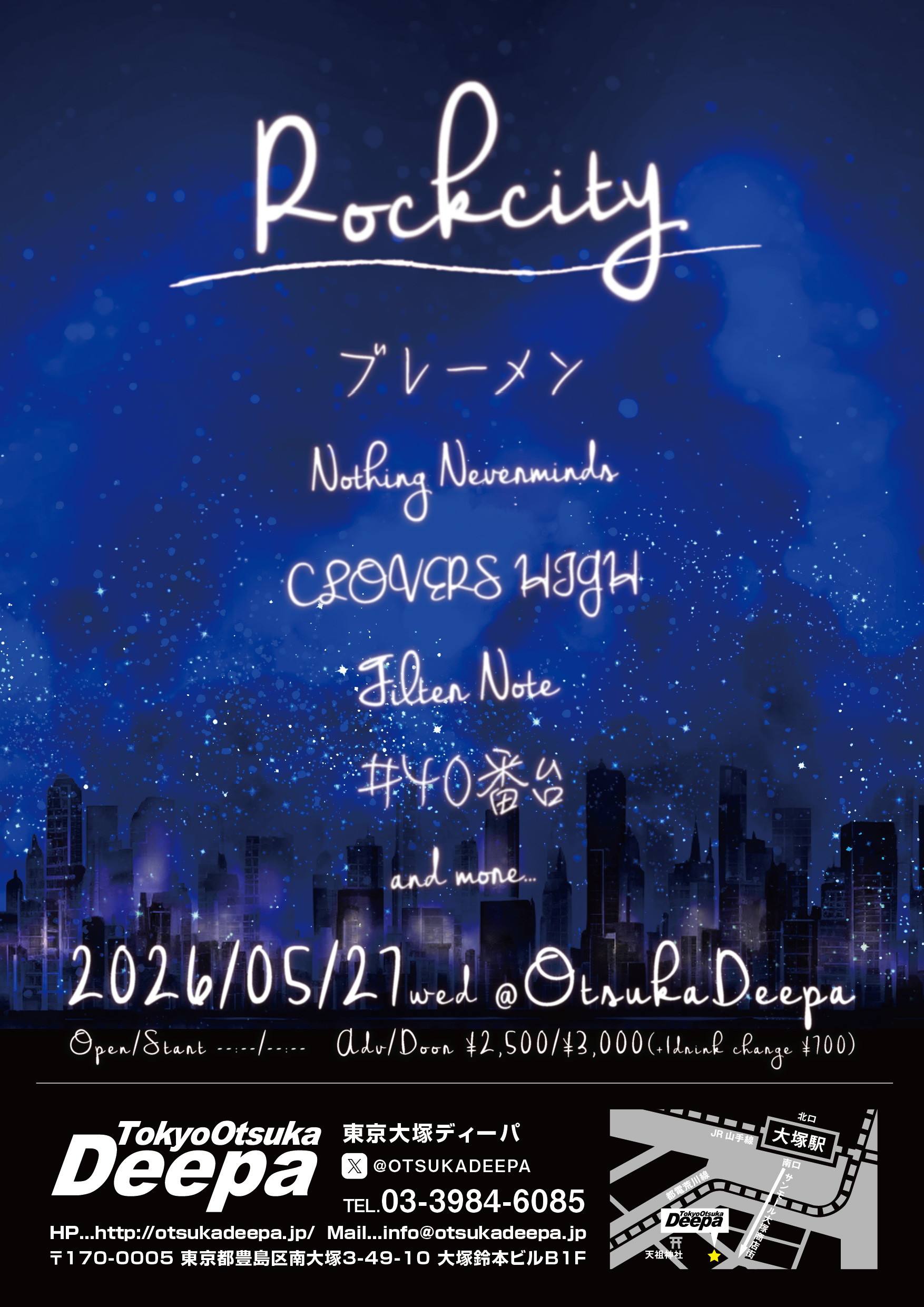 大塚 Deepa スケジュール 2026.5.27(Wed) Rockcity [ACT] ブレーメン/ Nothing Neverminds / CLOVERS HIGH / Filter Note / ♯40番台 and more... [OPEN/START] TBA/TBA [料金] ADV/DOOR ¥2,500/¥3,000 (各別1D)