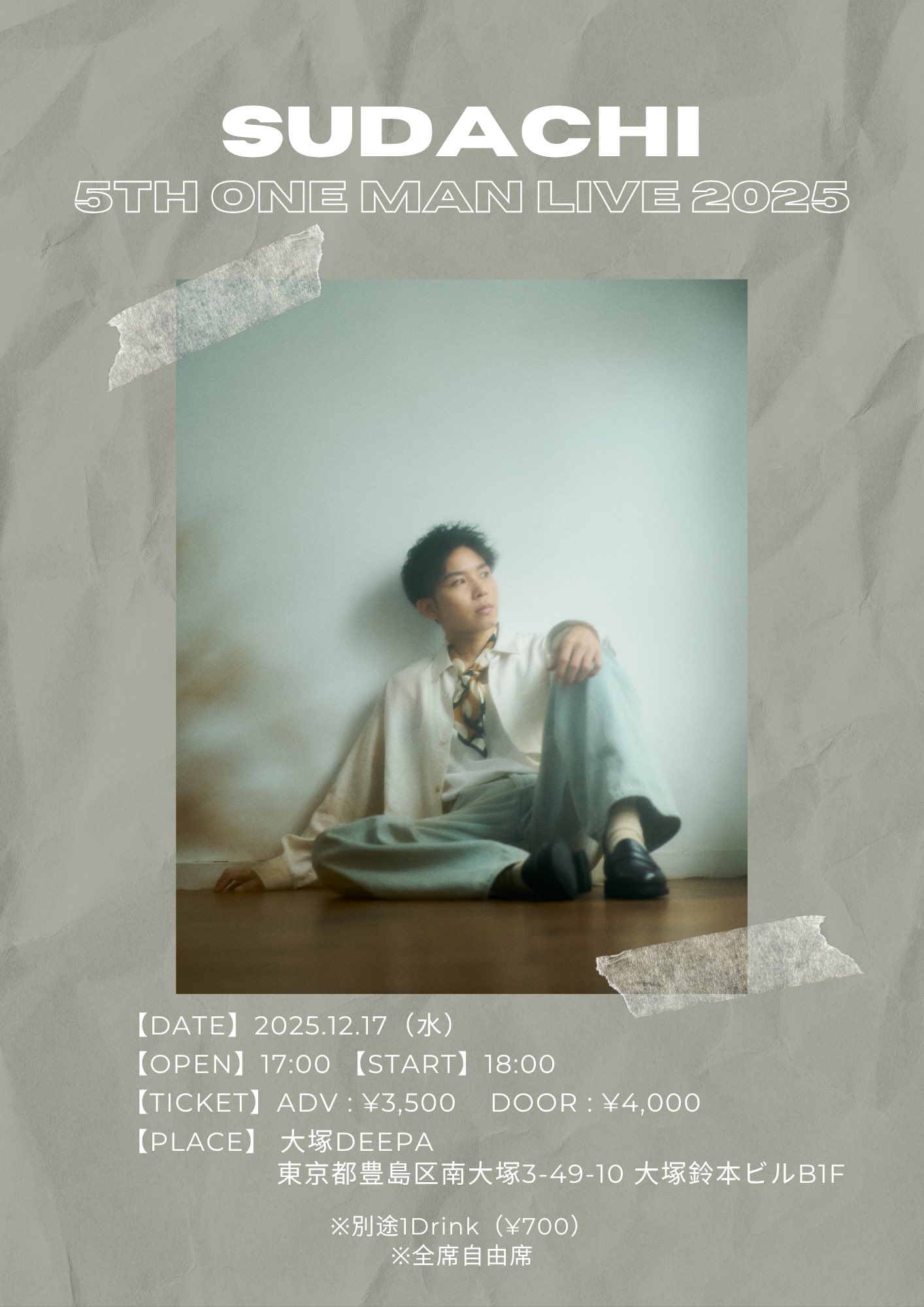 大塚 Deepa スケジュール 2025.12.17(Wed) Sudachi 5th One man Live 2025 [ACT] すだち [OPEN/START] 17:00/18:00 [料金] 前売り ¥3,500 当日¥4,000 ※別途1ドリンク(¥700)