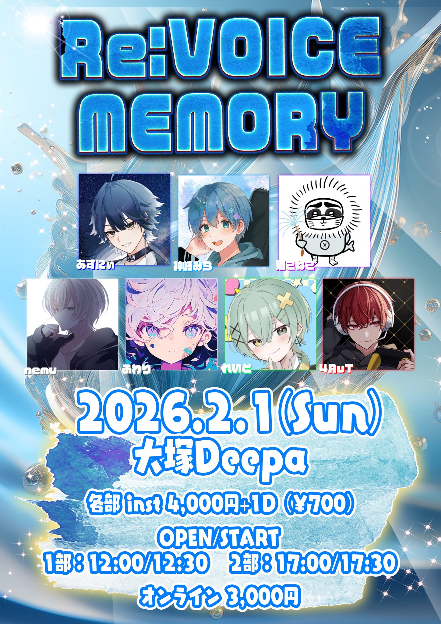 - 1部 ADV/DOOR ¥4,000/¥4,500 2部 ADV/DOOR ¥4.000/¥4,500 (1Drink代金¥700別途必要)