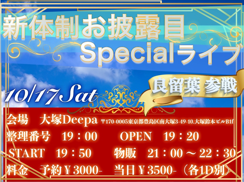 - ADV/DOOR ¥3,000/¥3,500 (1Drink代金¥600別途必要)